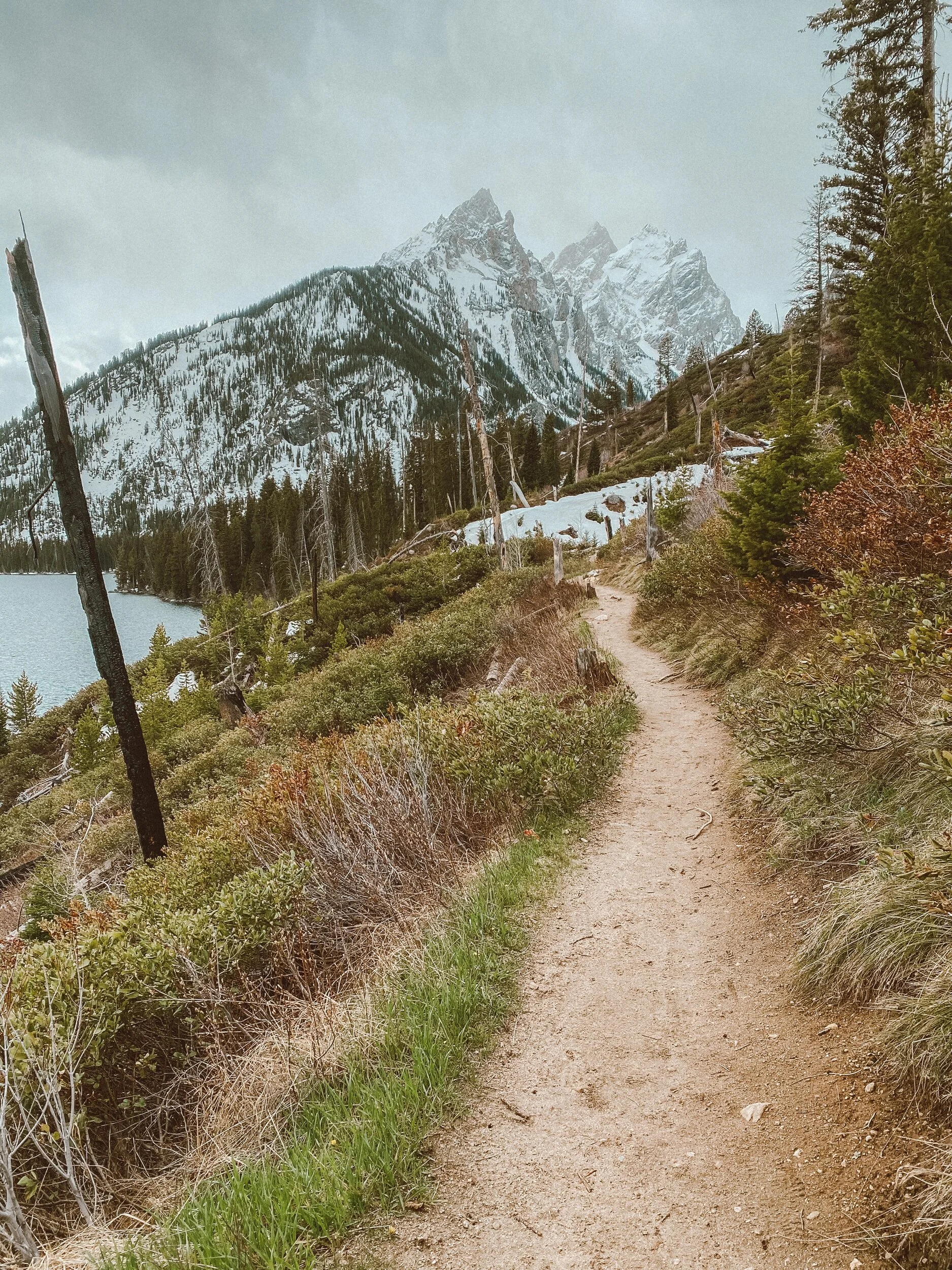 A quick note on the weather: I visited the park in early May, so just be warned that if you are planning on hiking anywhere in Grand Teton in May or any time earlier in the year, you will be hiking in the snow. There were parts of the trail where I would sink thigh-deep into it if I didn’t watch my footing well enough. For me, this wasn’t a big deal, and actually made the hike kind of fun!